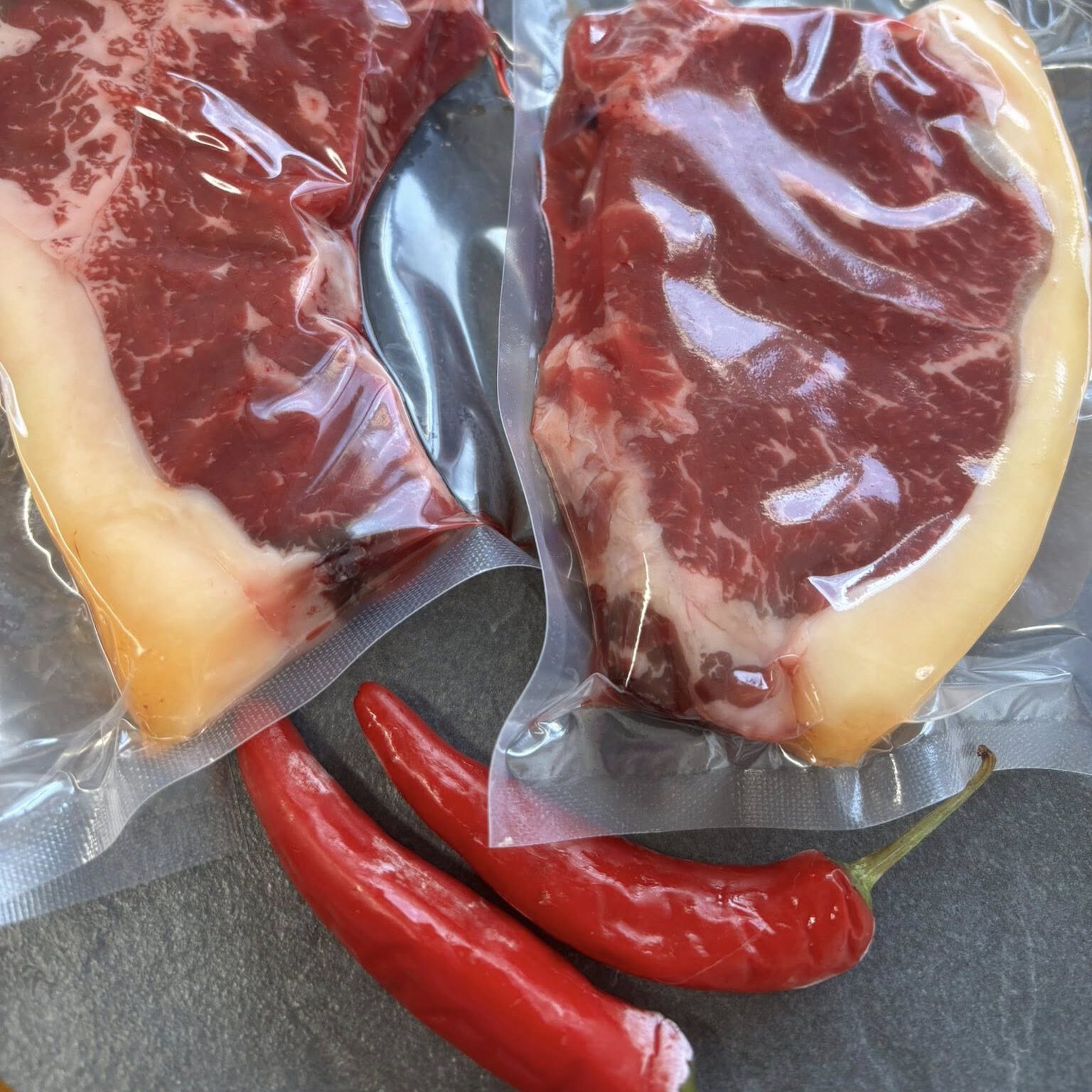 Wir reifen unser Rindfleisch drei bis vier (Dry Aged) Wochen. Auch Keule und Schulter. Auch wenn wir Reifungsverluste durch Trocknung zu beklagen haben. Fleisch, welches nicht im Dry Aged Verfahren weiter gereift werden kann, wird dann im Vakuum Wet Aged Verfahren weitergereift. Durch beide Reifungsverfahren, mal einzeln oder auch kombiniert, wird unser Fleisch noch zarter und intensiver im Geschmack.